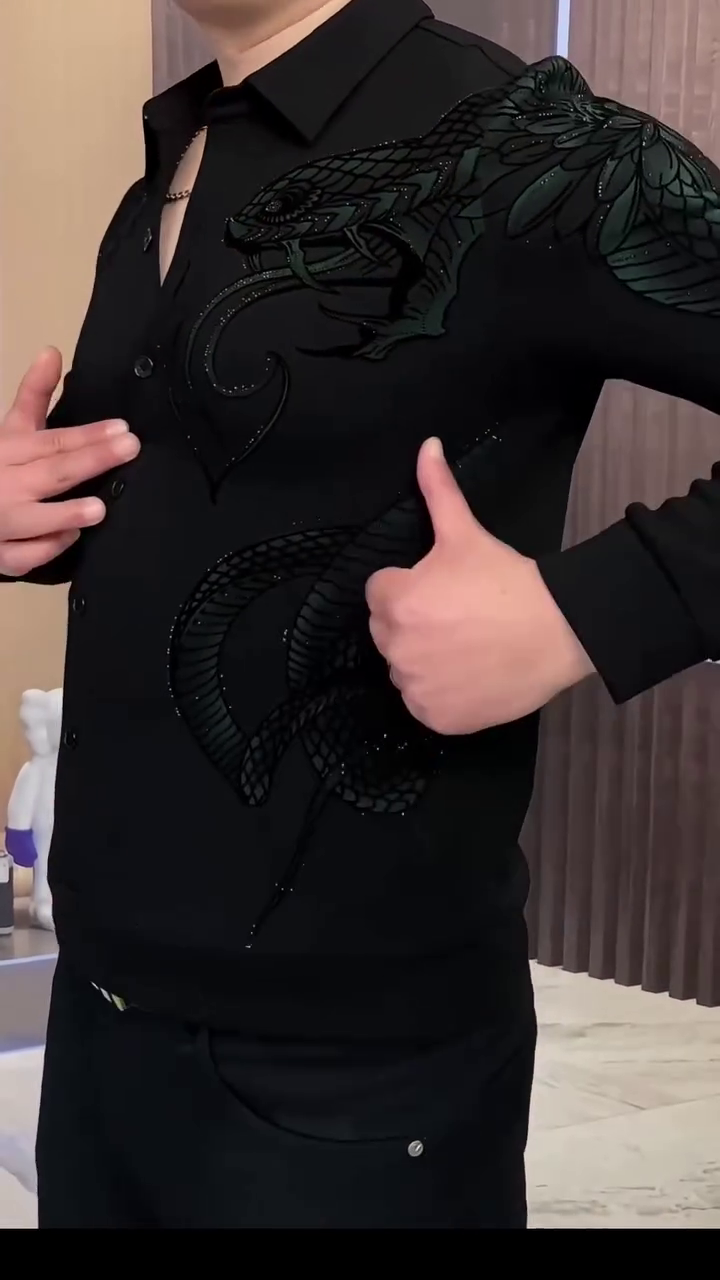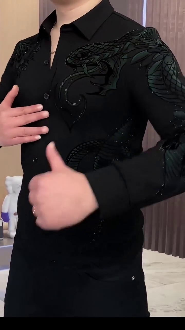 + Free ShippingMake a bold style statement with this men’s black dragon embroidered premium designer shirt, crafted for those who love luxury fashion with a powerful edge. Designed with an intricate dragon motif across the shoulder and chest, this shirt blends modern elegance with artistic detailing, making it perfect for parties, evening events, and high-end casual wear.