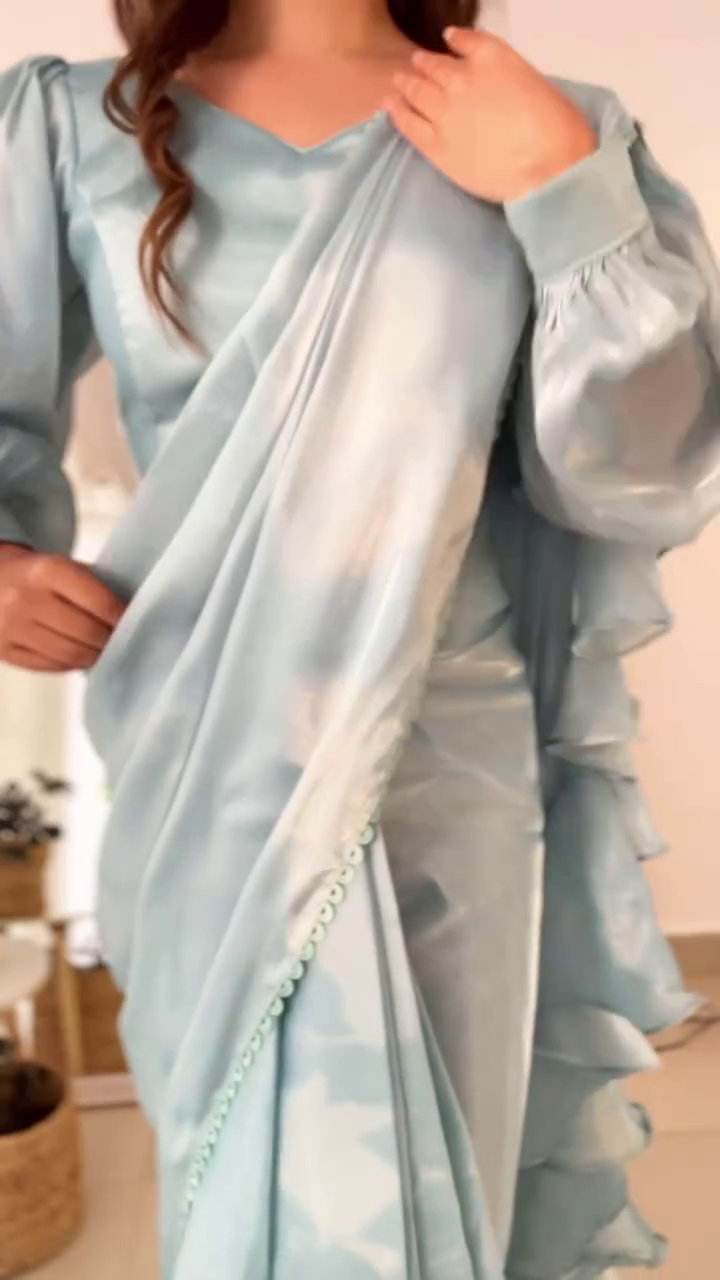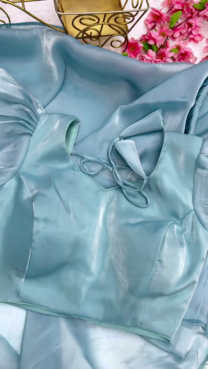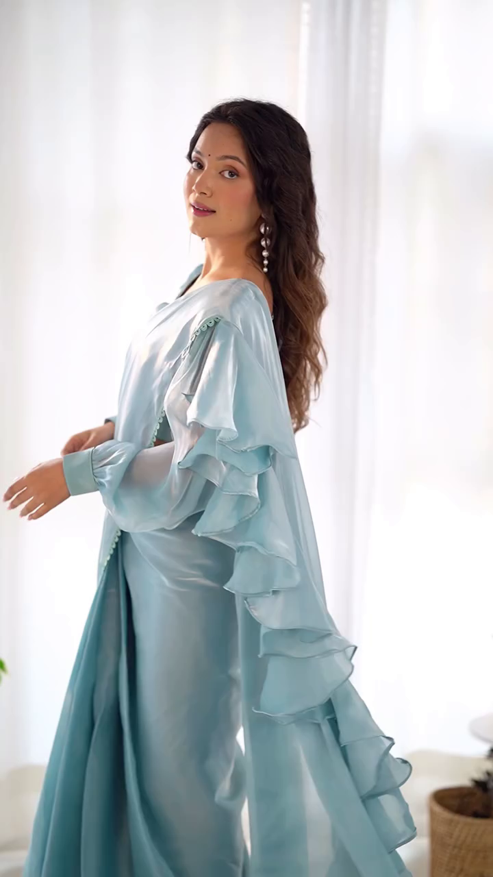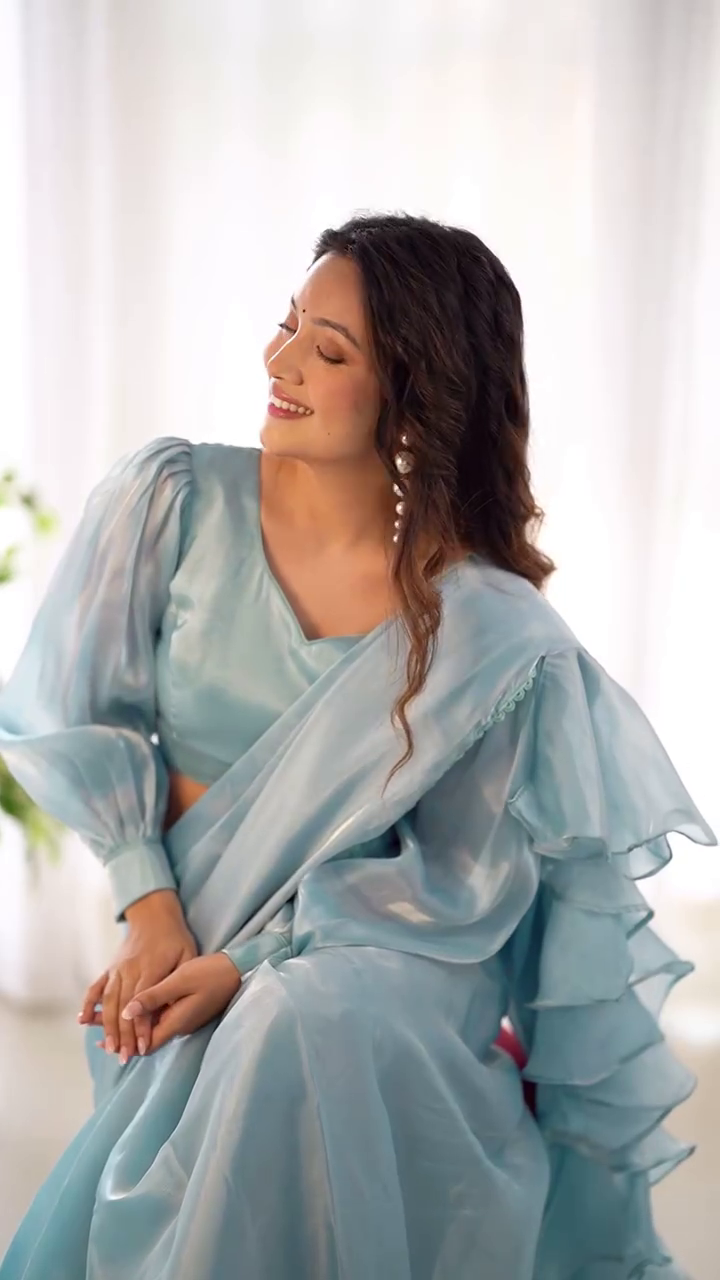Ready to Wear Solid/Plain Bollywood Organza Saree (Blue)