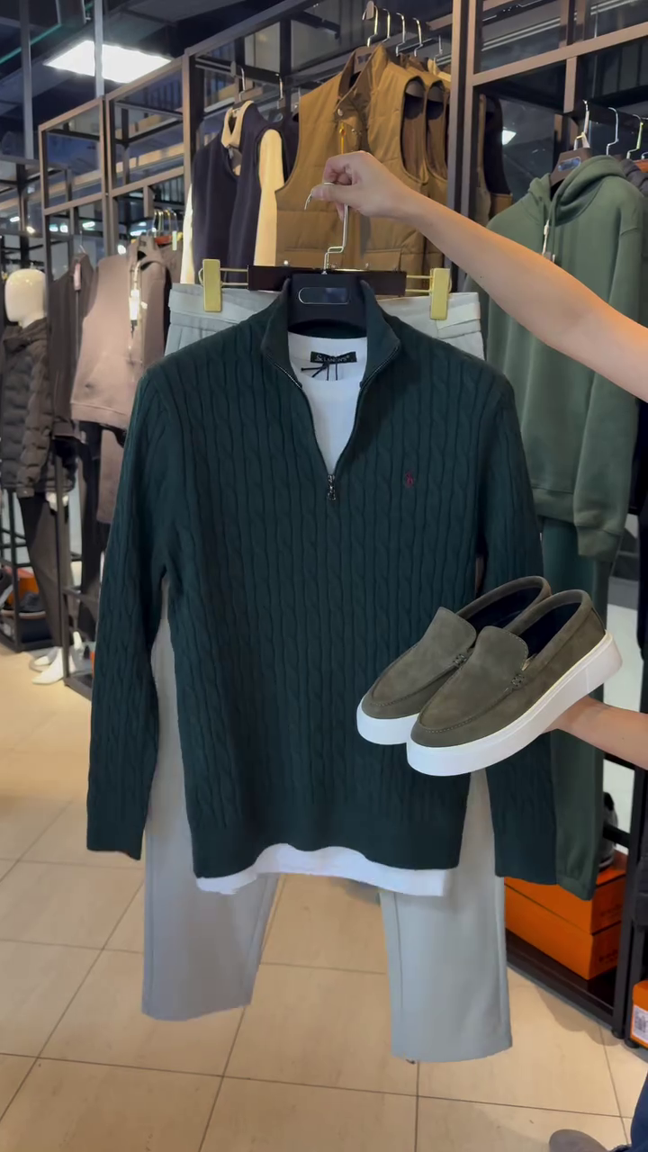 • The Quarter-Zip: The hardware adds a modern, sporty touch. Worn open, it creates a relaxed V-line; zipped up, it provides a sharp, structured mock-neck silhouette.