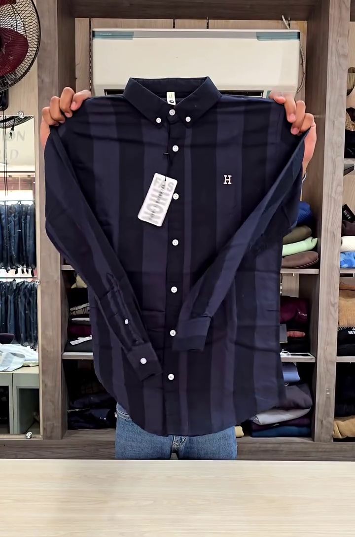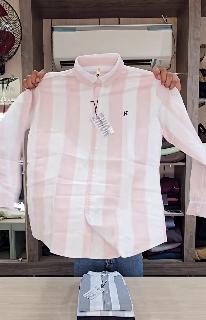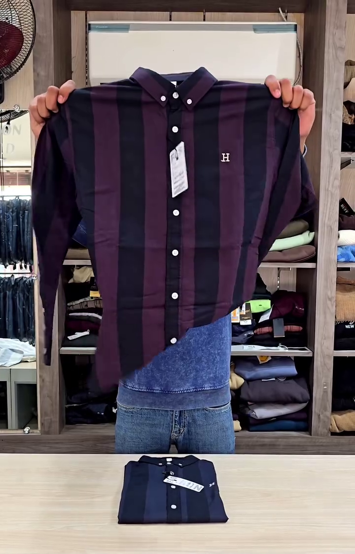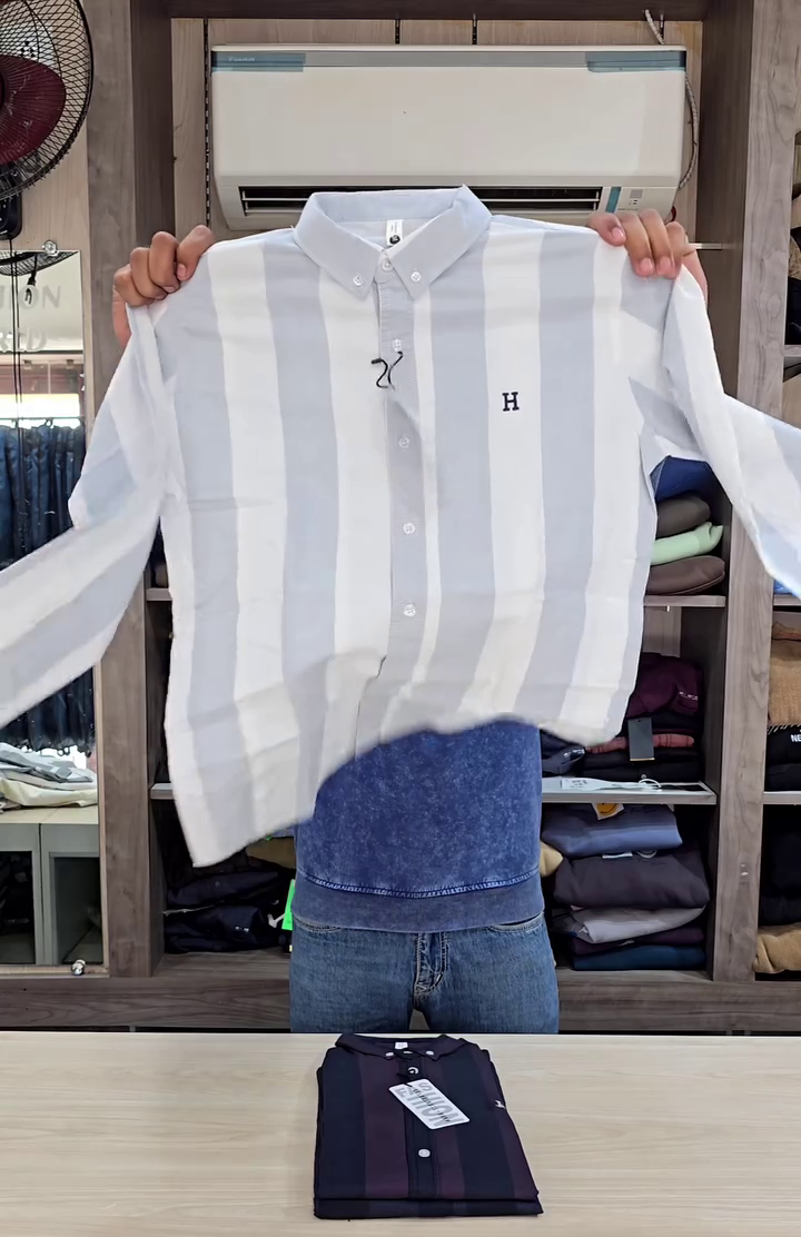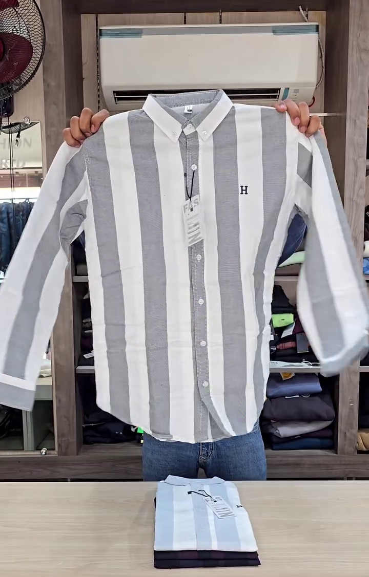 – Semi-cutaway collar – Logo at chest – Full french button placket – Long sleeves with rounded cuffs – Curved hemline – Vertical striped pattern – Satin weave – Tailored Fit